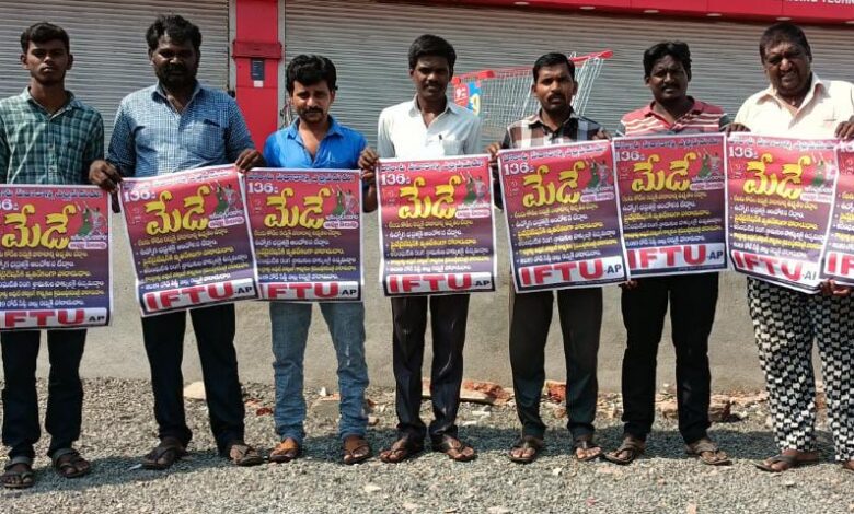 మోడీ ప్రభుత్వ కార్మిక వర్గ వ్యతిరేక విధానాలకు నిరసనగా 136 మేడే జయప్రదం చేయాలని భారత కార్మిక సంఘాల సమాఖ్య (ఐ.ఎఫ్.టి.యు) జిల్లా కోశాధికారి టి. తిరుపాల్ పిలుపునిచ్చారు. అనంతరం స్థానిక కర్నూలు పట్టణంలో గోకారి భవన్ నందు 136వ మేడే గోడ పత్రికను విడుదల చేయడం జరిగింది. ఈ సందర్భంగా తిరుపాల్ మాట్లాడుతూ లేబర్ కోడ్స్ రద్దు, ప్రభుత్వరంగ పరిశ్రమల పరిరక్షణ, కనీస వేతనాలు అమలు, అసంఘటిత కార్మికుల సమగ్ర చట్టం కోసం పోరాడాలనే స్ఫూర్తితో 136వ మేడే ను జరపాలని కార్మిక వర్గానికి పిలుపునిచ్చారు. అసంఘటిత రంగంలో ఉన్న కార్మికులకు చట్టబద్ధమైన ఎలాంటి హక్కులు లేవని ఫలితంగా కార్మికులు దుర్భరమైన పరిస్థితులు ఎదుర్కొంటున్నారని అన్నారు. కనీస వేతనాలు, ప్రమాద బీమా పథకం,హమాలీ కార్మికులకు చట్టబద్ధమైన హక్కులు కల్పించాలని సౌకర్యాలకు నోచుకోక బానిస లాగా వెట్టిచాకిరి చేస్తున్నారని ఆవేదన వ్యక్తం చేశారు. కార్మికులు సాధించుకున్న కార్మిక చట్టాలను రద్దు చేసి 4 కోడలుగా చేయడాన్ని వ్యతిరేకిస్తూ కార్మిక లోకం ఉద్యమించాలని డిమాండ్ చేశారు. ఆటో కార్మికులకు భవన నిర్మాణ కార్మికులకు సంక్షేమ బోర్డు ఏర్పాటు చేసి నిధులు కేటాయించాలని డిమాండ్ చేశారు.కార్మికులు తమ హక్కుల పరిరక్షణ కోసం సంఘటితంగా ఉద్యమించాలని, మోడీ ప్రభుత్వం అనుసరిస్తున్న కార్మిక వ్యతిరేక విధానాలకు నిరసనగా 136 వ మేడే ను జరపాలని కార్మికులకు పిలుపునిచ్చారు. ఈ కార్యక్రమంలో ప్రగతిశీల ఆటో మోటార్స్ వర్కర్స్ యూనియన్ జిల్లా అధ్యక్షుడు అంజి, రాష్ట్ర కార్యవర్గ సభ్యుడు సురేష్ నాయక్, రవి, గౌడ్, మాభాష, ఓబులేష్, సామేలు, మనోహర్, మహేష్, నిరంజన్, అనిల్, నాగరాజు మొదలైన వారు పాల్గొన్నారు.